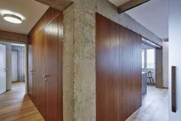 Vyrovnali jsme podlahy a stávající pohledové betony. Demontovali jsme původní a dodali jsme nové interiérové i vstupní dveře včetně zárubní.