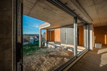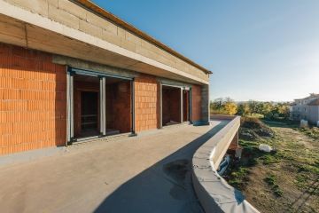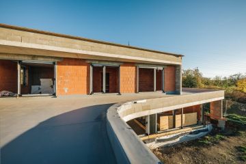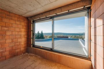 Pro zateplení ploché střechy jsme použili tepelnou izolaci ze spádových klínů EPS z expandovaného polystyrénu a foliovou hydroizolaci. Dodali jsme také hliníková okna s izolačním trojsklem a posuvný systém HS portal.
