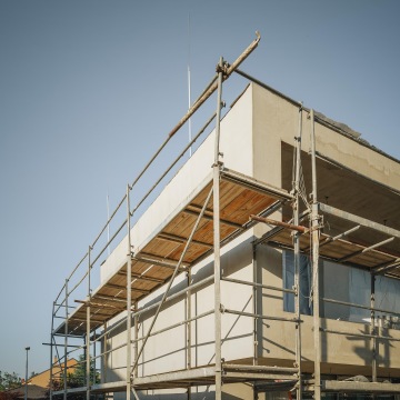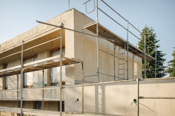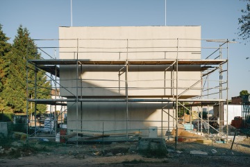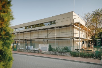 Nosné a nenosné stěny jsme zhotovili z keramických tvárnic, instalační předstěny z pórobetonu. Dům jsme zastřešili plochou střechou. Stropy jsou železobetonové. Podle projektu jsme do nich zabudovali stropní chlazení, systém BKT Rehau.